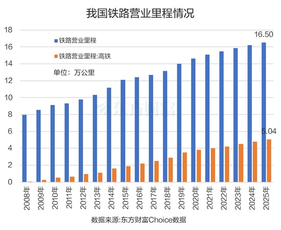 此前,中国国家铁路集团有限公司(以下简称“国铁集团”)表示,“十四五”时期,全国铁路营业里程由14.63万公里增至16.5万公里、增长12.8%;高铁由3.79万公里增至5.04万公里、增长32.98%。